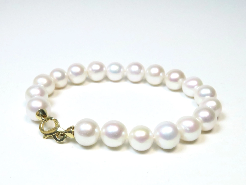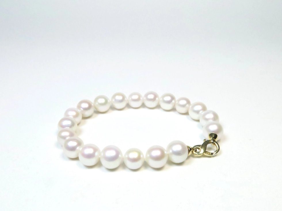 Glänzende Mingperlen mit sehr schöner Oberfläche sind zu einem eleganten Armband geknüpft.
