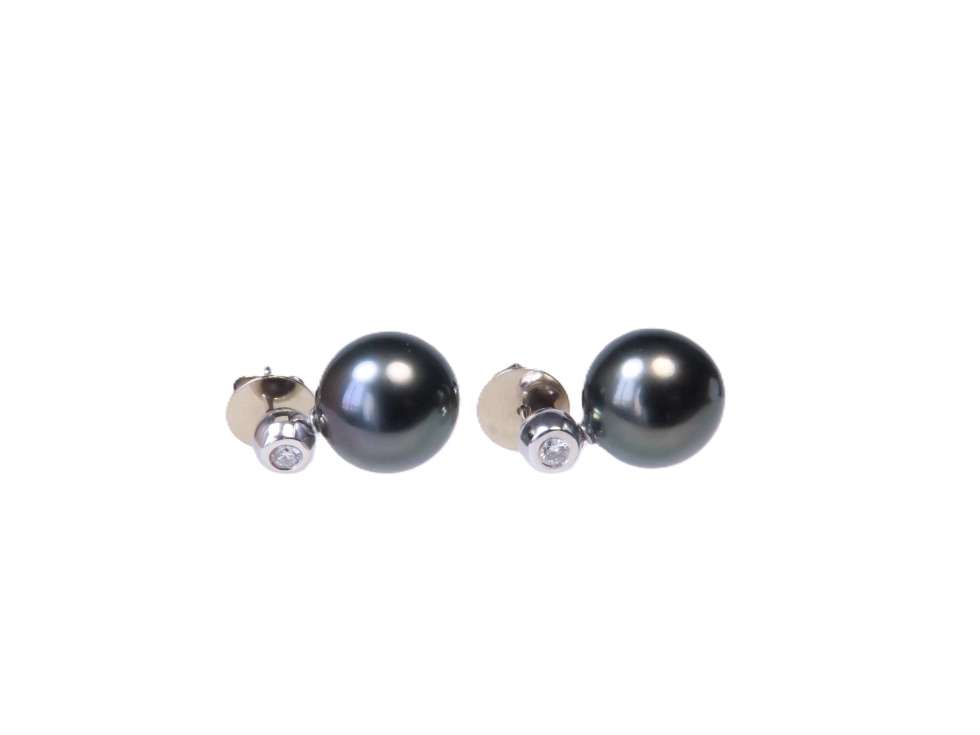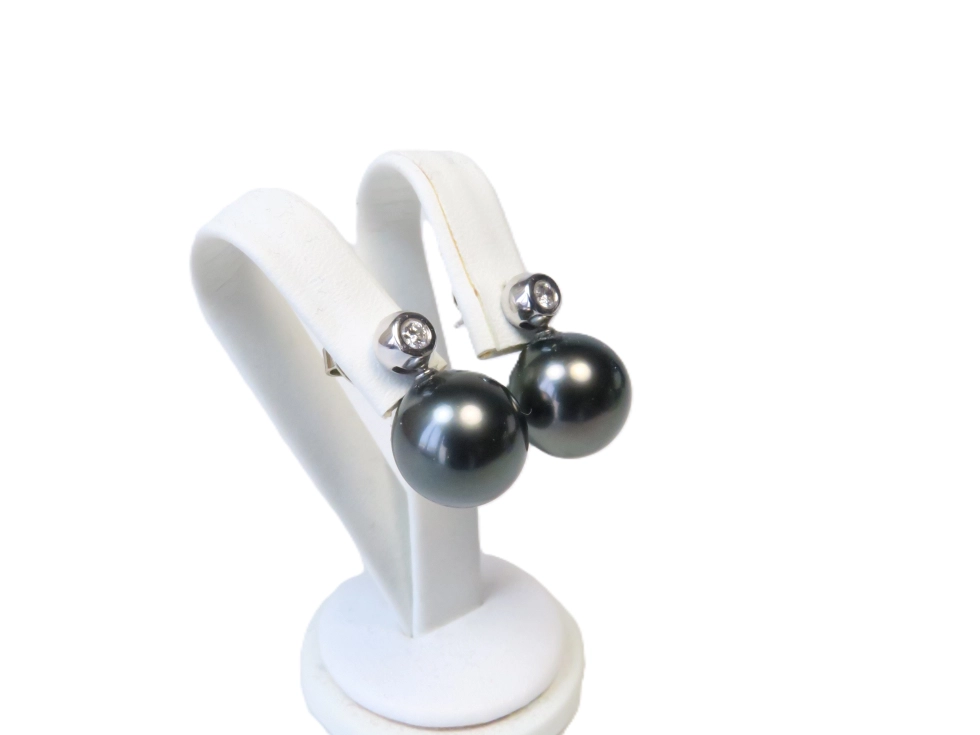 Eine edle Kombination von Diamantstecker mit großen dunklen Südseeperlen höchster Qualität.