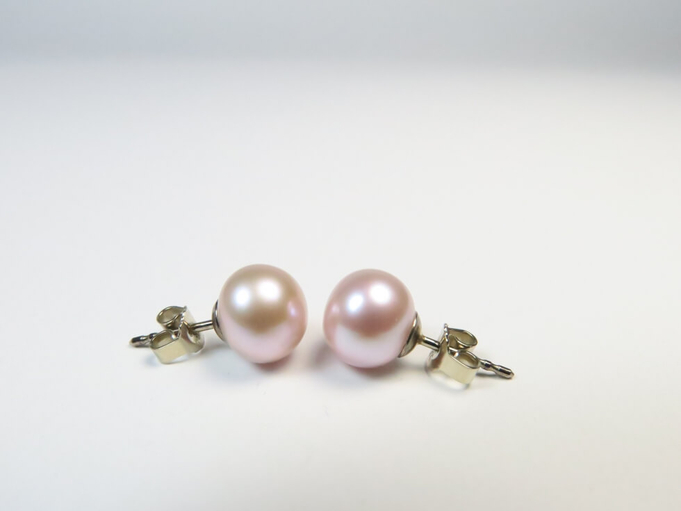 Große Perlen in wunderschönem zartem Rosé Ton sind auf solide Stecker aus 585er/14kt. Gold gesetzt.
